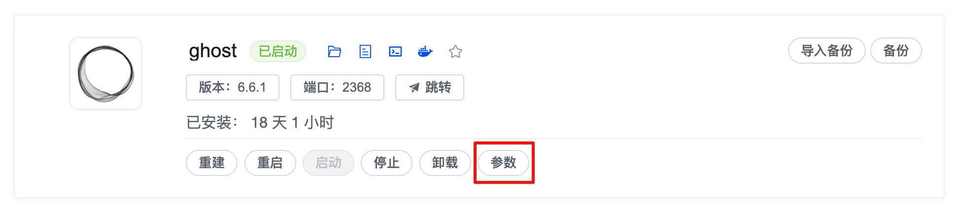 每当通过应用商店升级的时候,上面的临时修改就会被覆盖,.envdocker-compose.yaml 都会被覆盖,其中 .env 将会覆盖为安装时设置的参数,而 docker-compose.yaml 会被覆盖为应用商店渠道最新的版本。